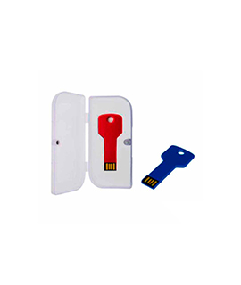 Memoria USB metálico de 4GB de capacidad, en forma de llave con estuche plástico blanco traslúcido y eva troquelada color blanco.